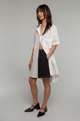 The Brooklyn Cotton shorts is made of a crisp, pima cotton poplin fabric. Featuring contrast stitching detail, double front pleats, side and back pockets, and a french seam finish all throughout.