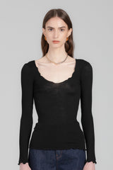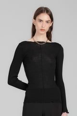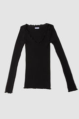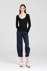 A reversible design featuring an exposed centre seam. Cut from a delicate wool and silk melange knit fabric creating an elevated basic. From the undone hem to the slightly sheer ribbed finish, Aila top will become your go-to for everyday layering.