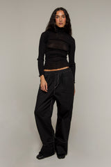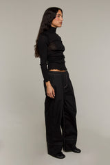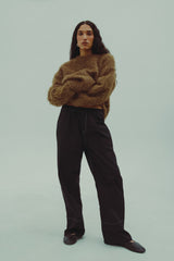 The Charlie Pants are made of a crisp light-weight, pima cotton poplin fabric. Featuring a pull-on elastic waistband, contrast stitch details, and oversized pant cuff.