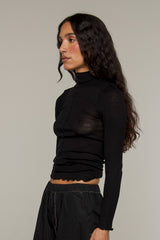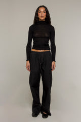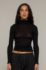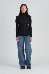 A turtleneck design featuring an exposed centre seam. Cut from a delicate wool and silk melange knit fabric creating an elevated basic. From the undone hem to the slightly sheer ribbed finish, Zola top will become your go-to for everyday layering.